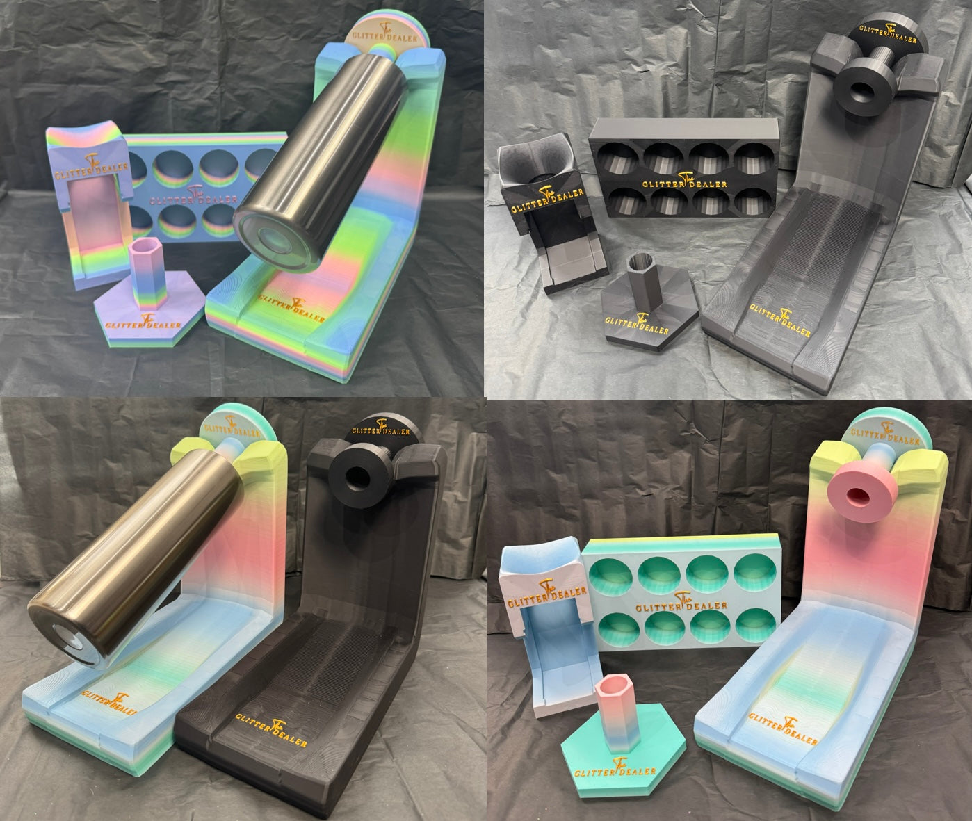 Exclusive 3D Printed ‘The Glitter Dealer’ merch Collection. Available in five filament colour choices, all adorning ‘The Glitter Dealer’ logo. Featuring the original’Tilt-o-whirl’, tumbler stand, glitter funnel, medicine pot holder, with more products being released soon…