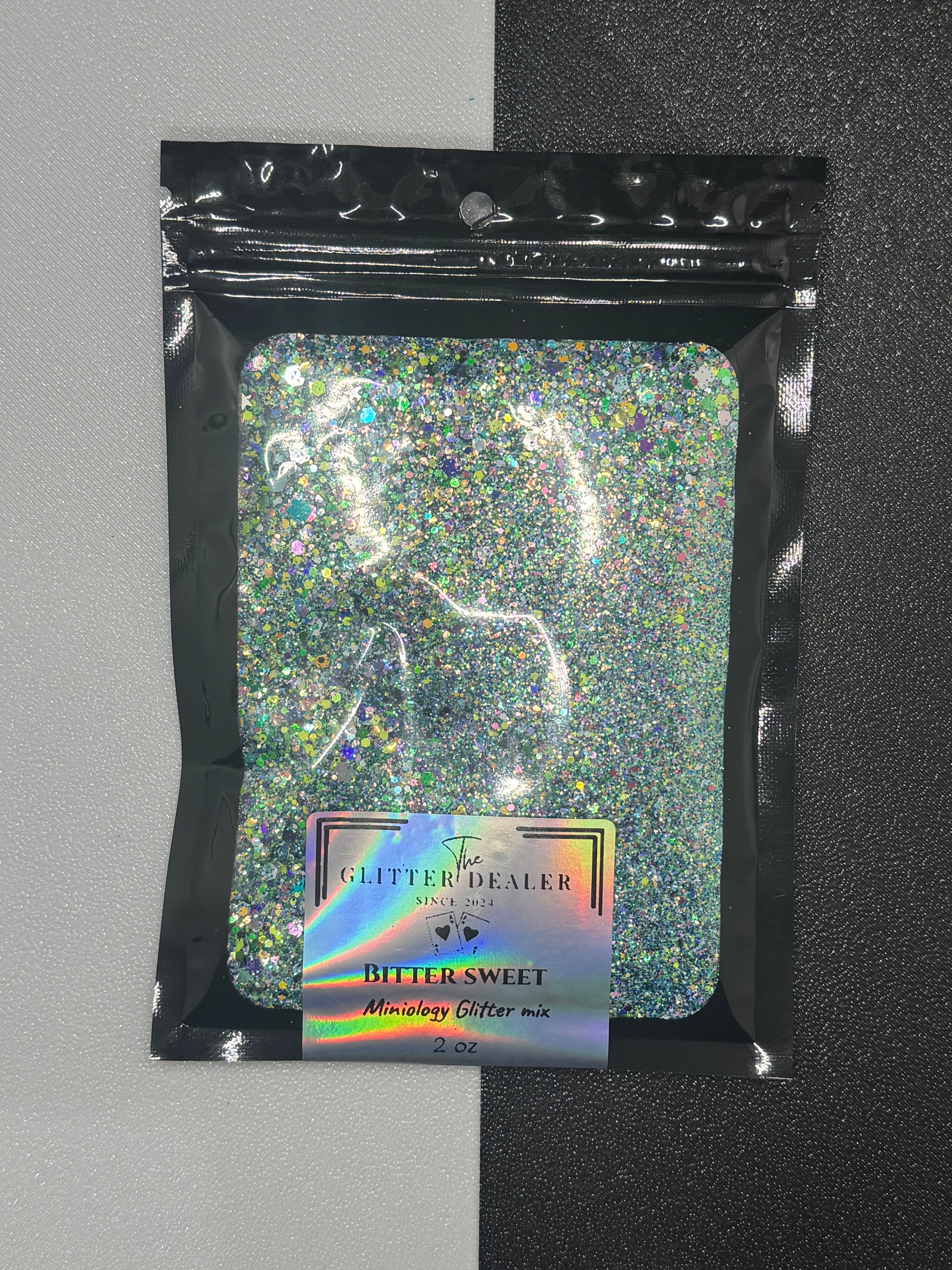 Discover the mesmerizing effects of Bitter Sweet Glitter. This unique product features a striking green, blue, yellow and silver hexagonal glitter mix with a holographic colour shift. Create eye-catching looks with this vibrant and dynamic addition to any projects.