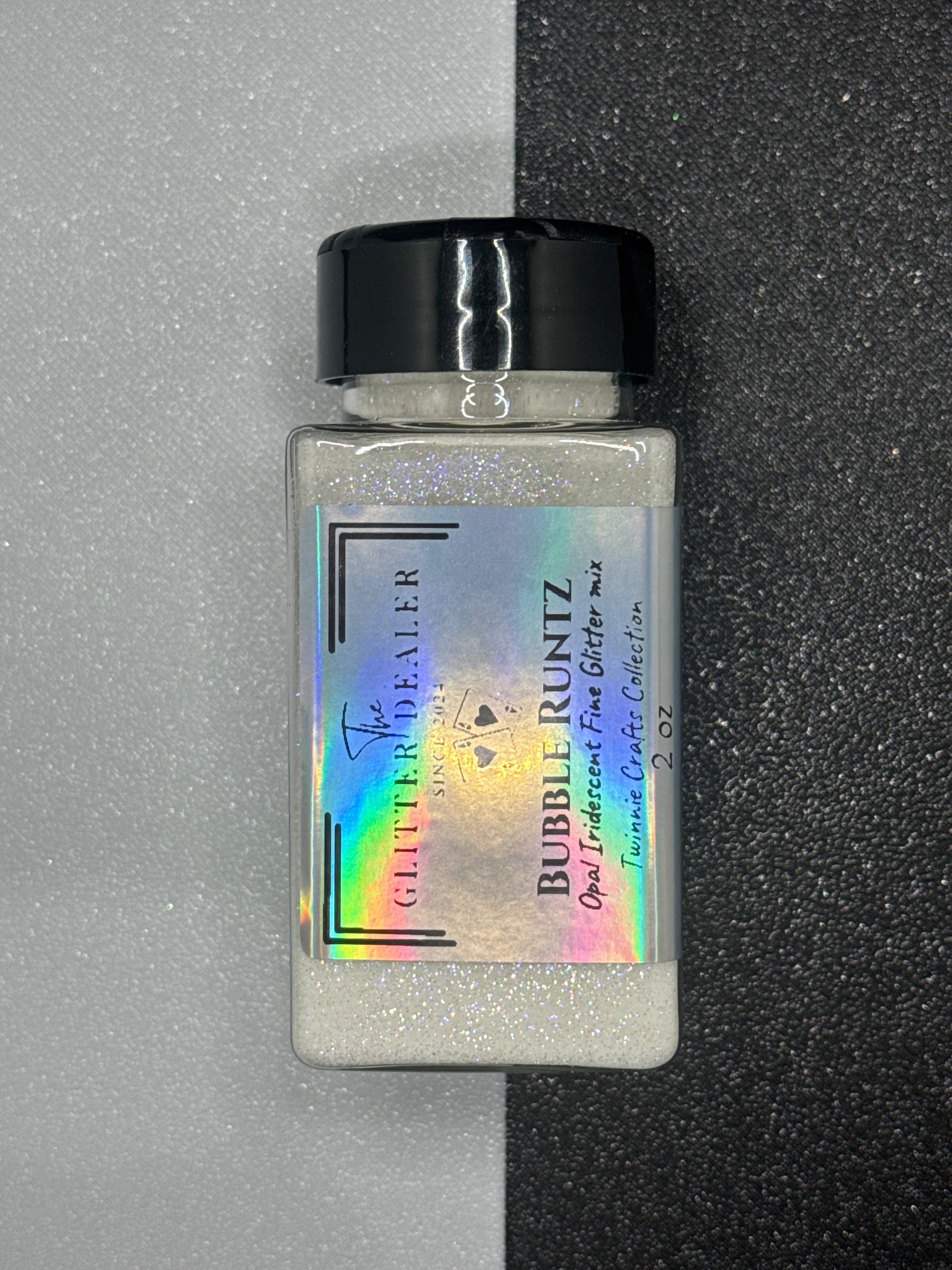 Experience a dazzling display with Bubble Runtz hexagonal fine Opal iridescent glitter mix. This unique blend sparkles and shines, adding depth and dimension to any project. Perfect for adding a touch of magic to your creations.