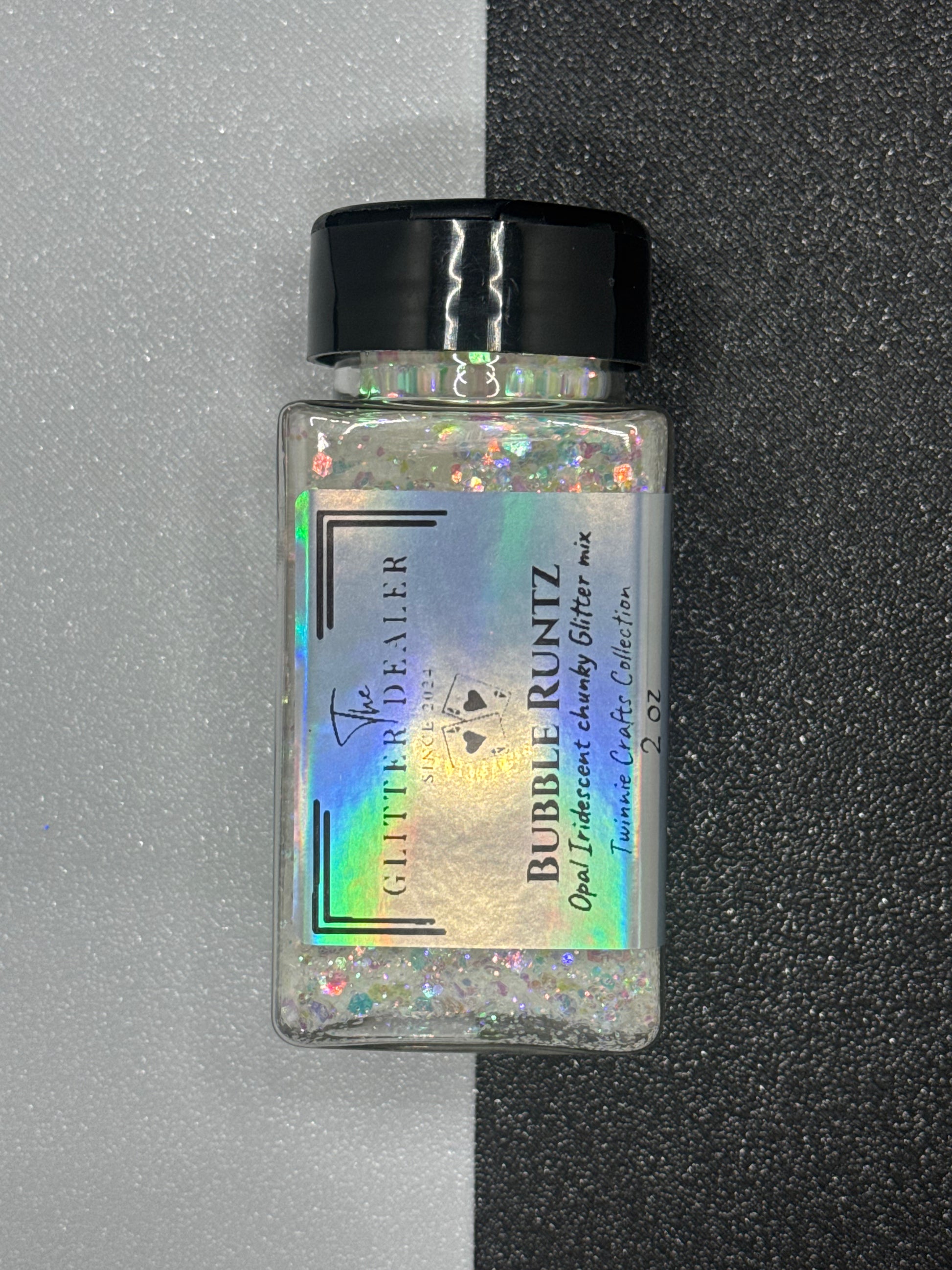 Experience a dazzling display with Bubble Runtz hexagonal chunky Opal iridescent glitter mix. This unique blend sparkles and shines, adding depth and dimension to any project. Perfect for adding a touch of magic to your creations.