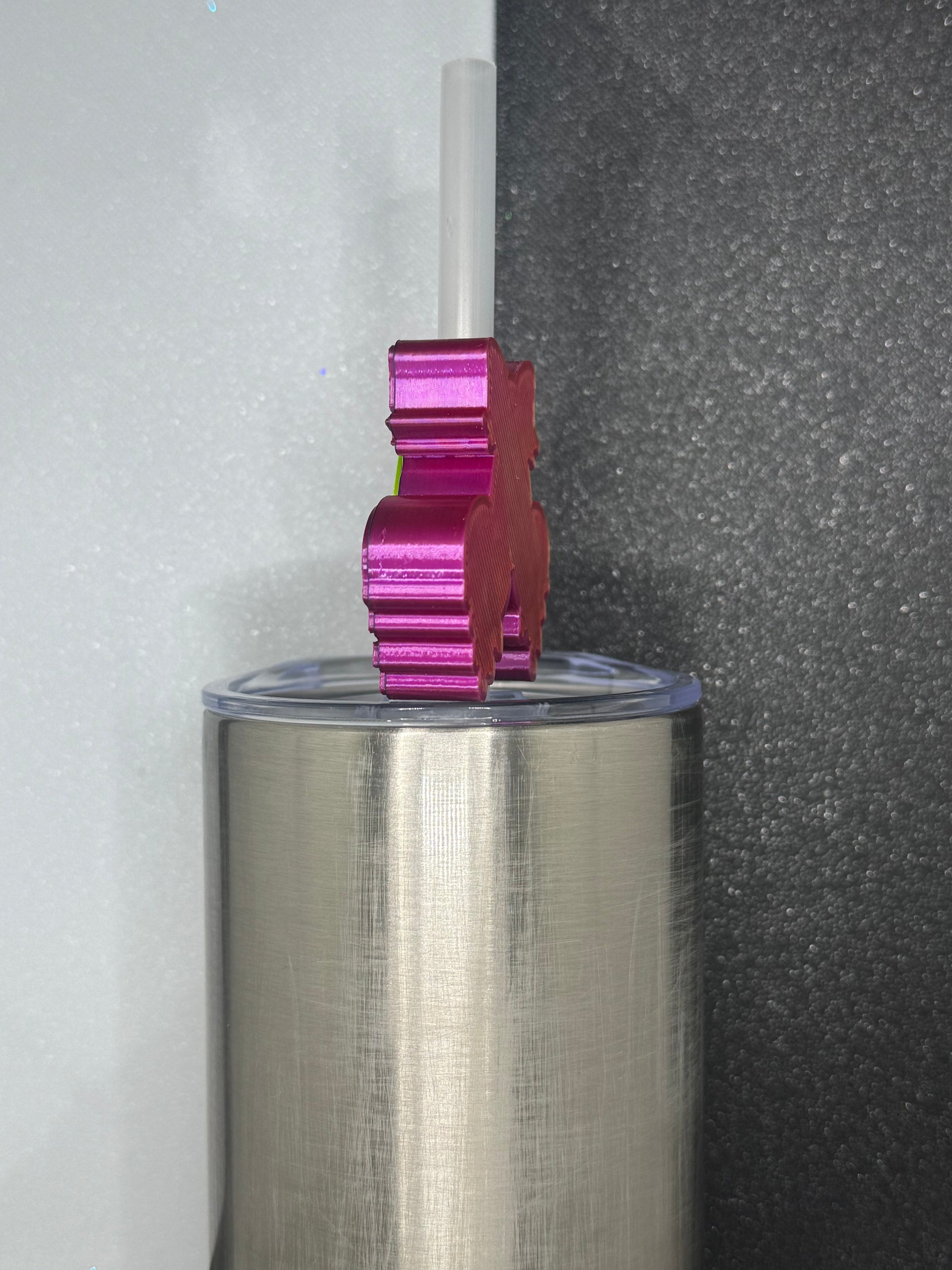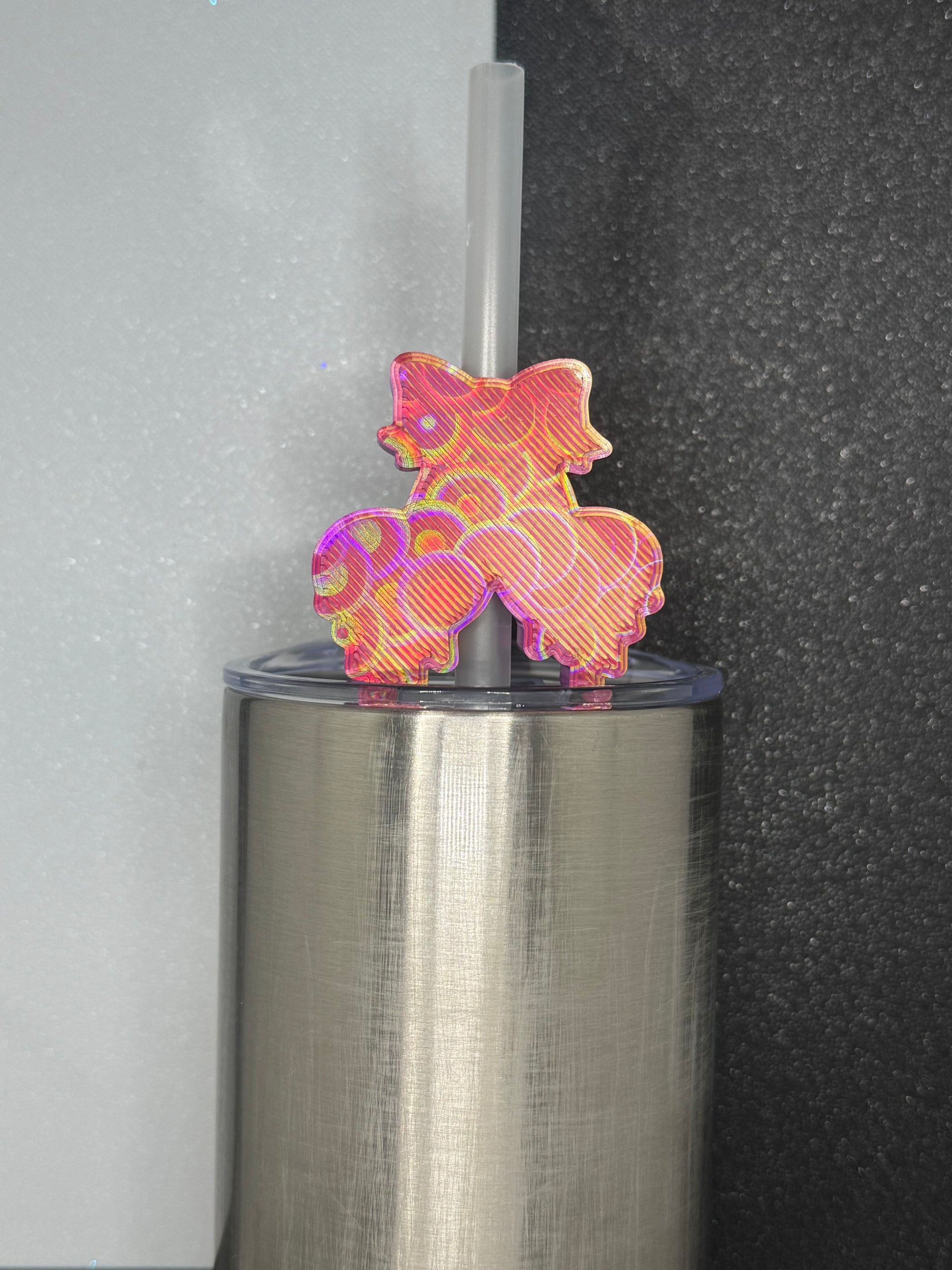 Add a unique touch to your drinks with the Cherry’s skull! Featuring a colour shift red, purple, gold, with a black outline and neon green stems. Featuring a holographic patterned back, these cherry’s skull shaped straw topper adds a fun effect to your beverages. Available in two sizes, elevate your drinking experience with this one-of-a-kind product.