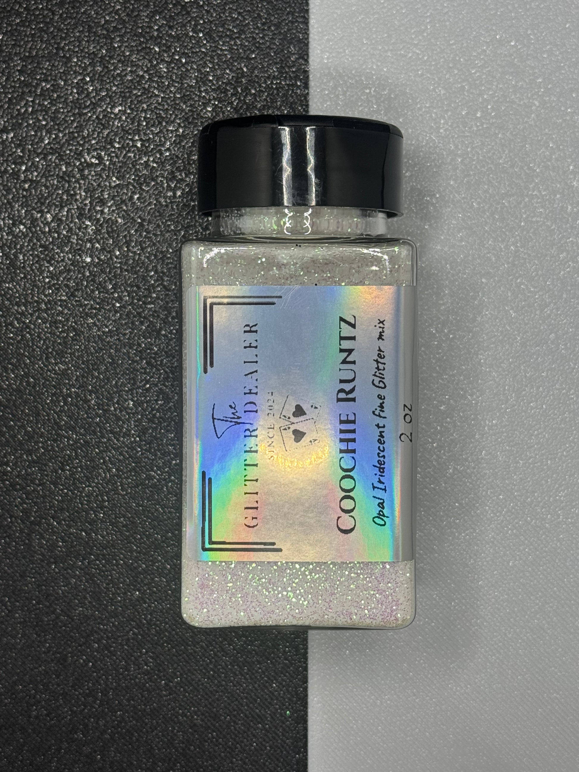 Experience a dazzling display with Coochie Runtz hexagonal fine Opal iridescent glitter mix. This unique blend sparkles and shines, adding depth and dimension to any project. Perfect for adding a touch of magic to your creations.