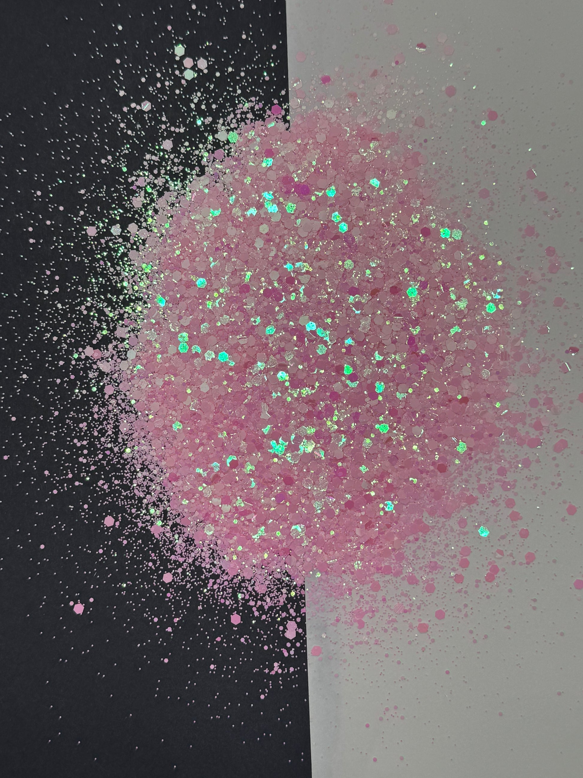 Bubba Haze is an opal bubble gum pink chunky glitter.