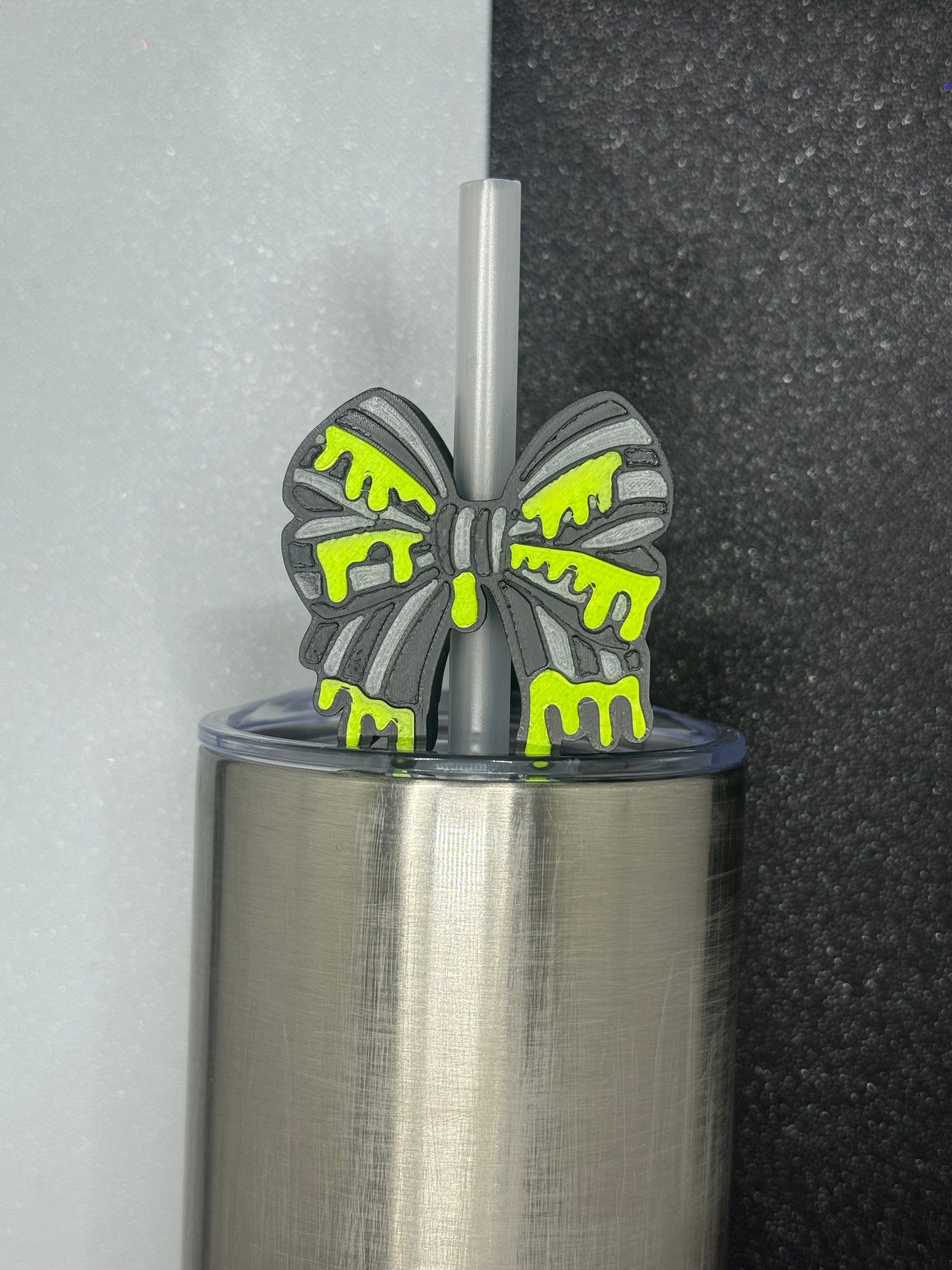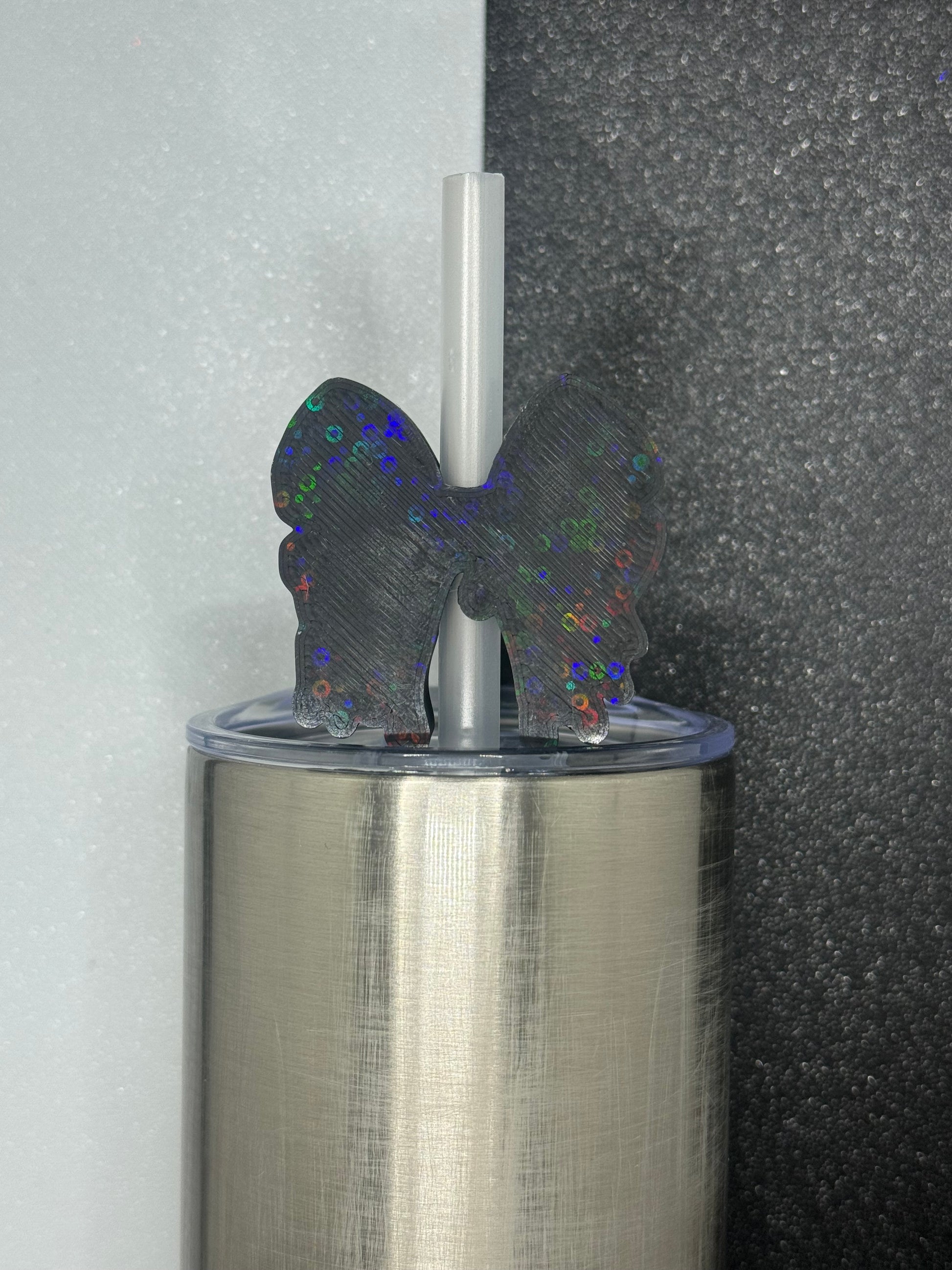 Add a unique touch to your drinks with the Dripping Bow! Featuring a blue glow in the dark elements, holographic patterned back, this bow-shaped straw topper adds a fun dripping effect to your beverages. Available in two sizes, elevate your drinking experience with this one-of-a-kind product.