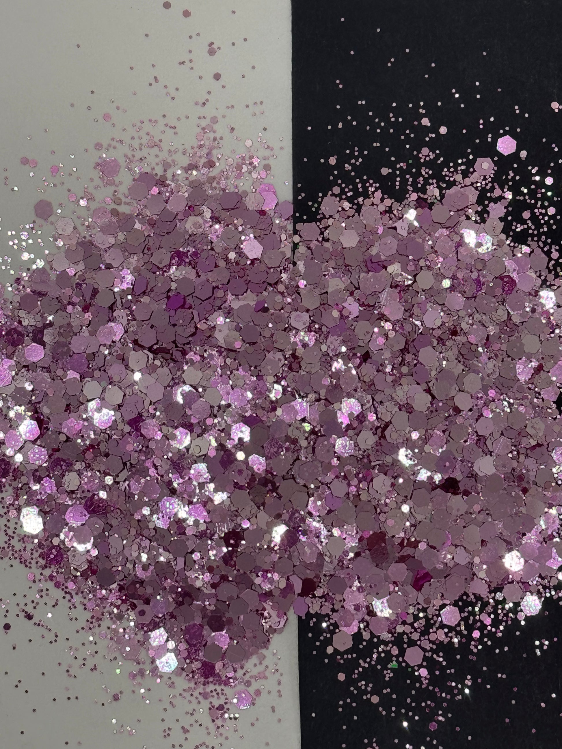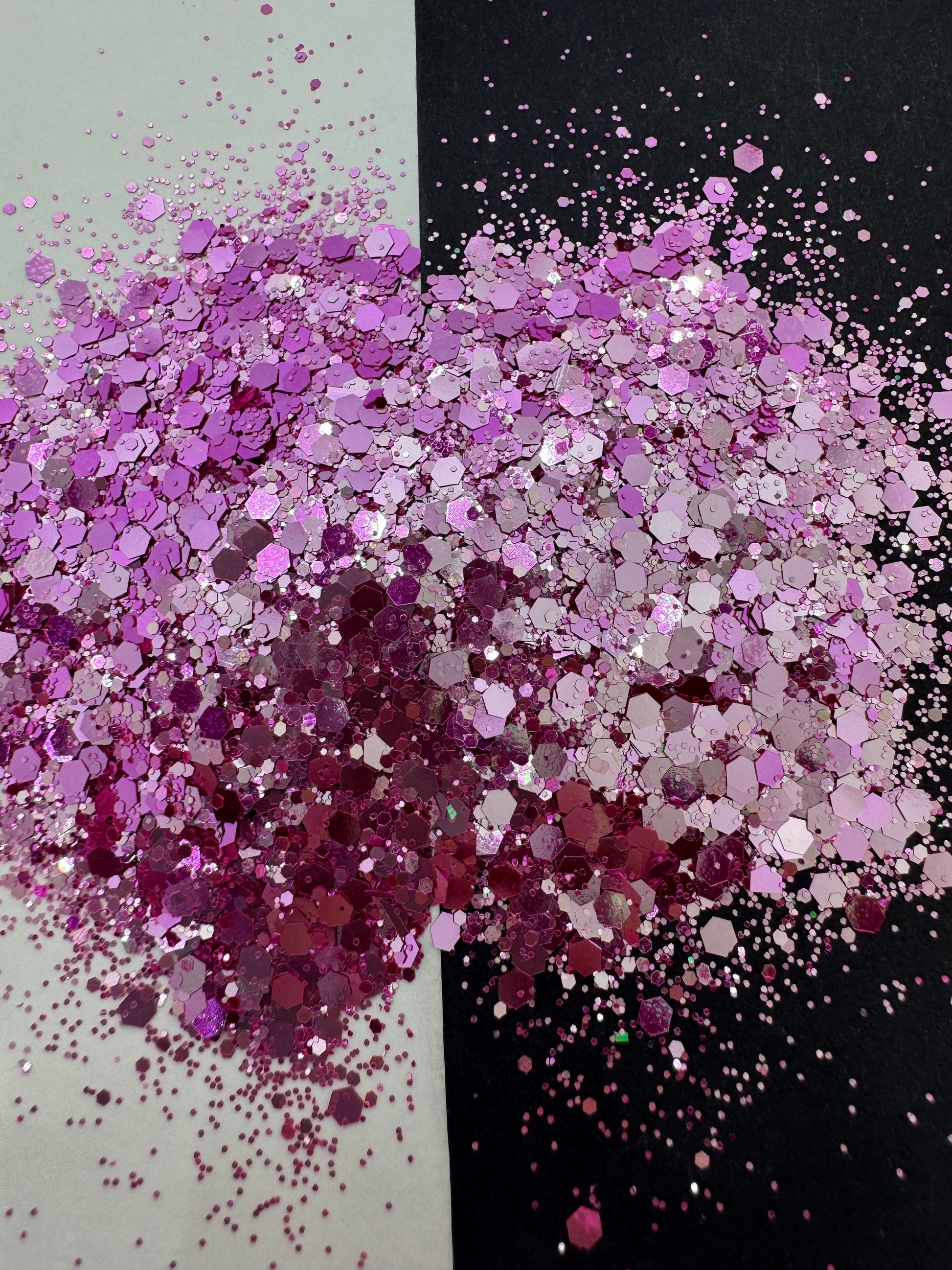Funkfetti has a colour shift of light pink, dark pink, silver hues in a chunky glitter mix.