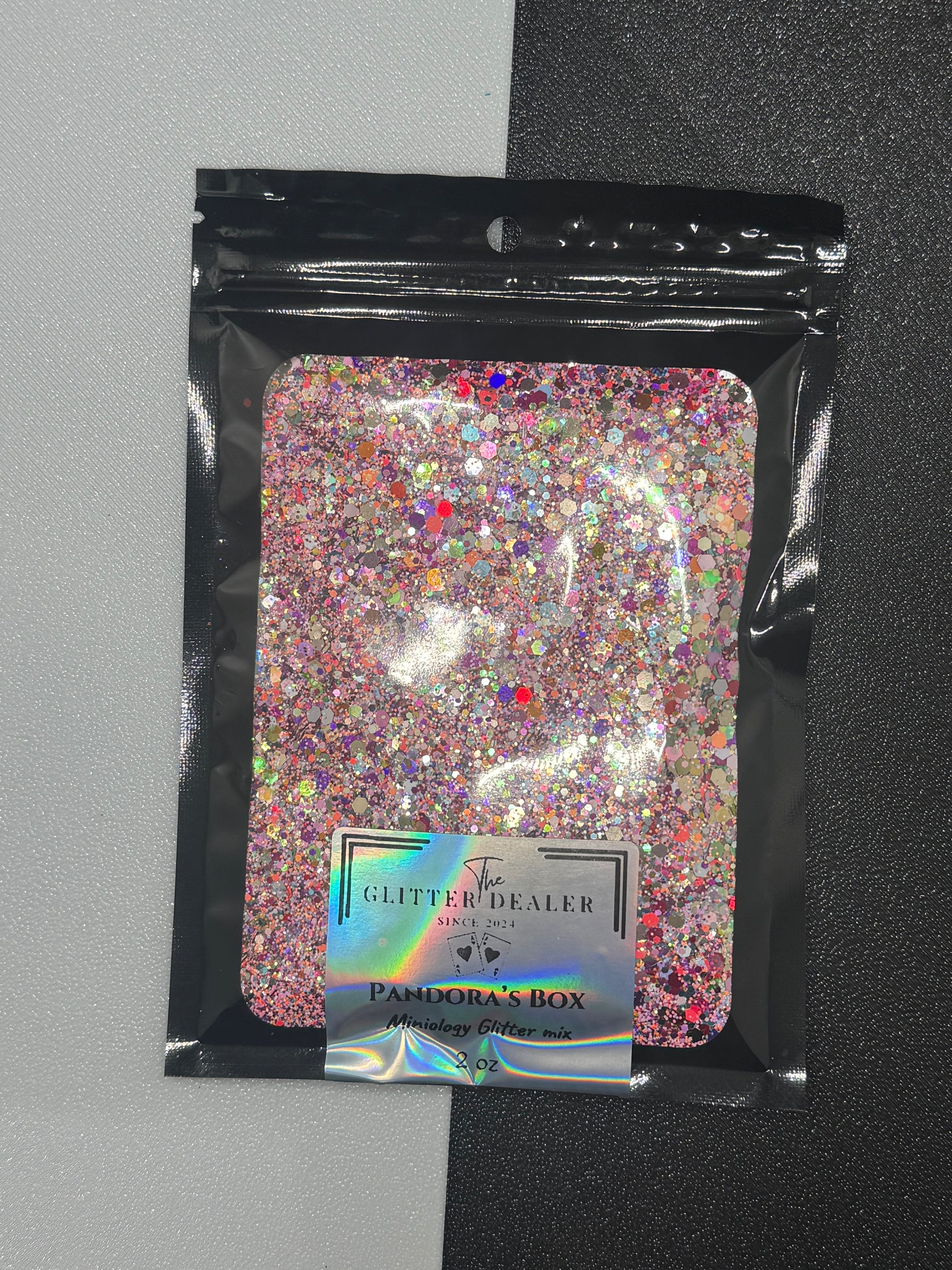 Discover the mesmerizing effects of Pandora’s Box Glitter. This unique product features a striking pink, coral, orange, purple, gold and silver hexagonal glitter mix with a holographic colour shift. Create eye-catching looks with this vibrant and dynamic addition to any projects.