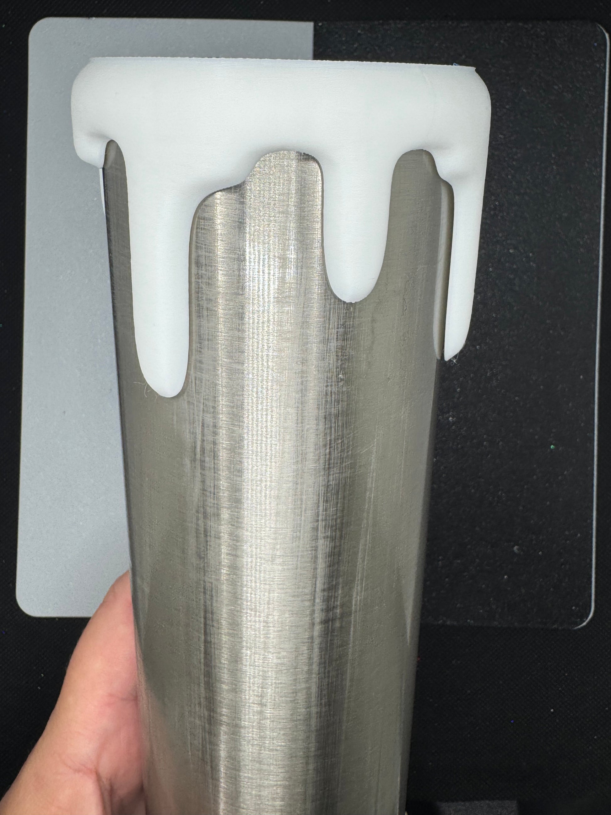 3D printed tumbler snow drip element, these are based on a 20oz stainless steel tumbler in size but may also fit many other straight tumblers or tapered tumblers.