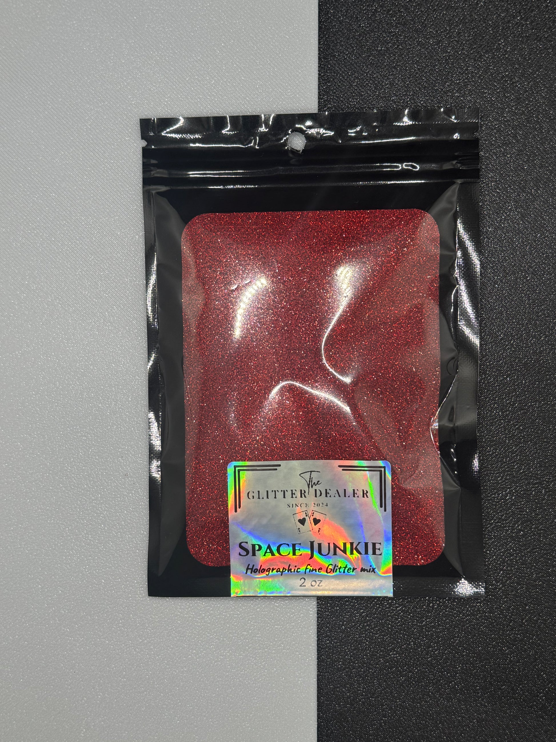 Experience a dazzling display with Space Junkie holographic hexagonal fink glitter mix. This unique blend sparkles and shines, adding depth and dimension to any project. Perfect for adding a touch of magic to your creations.